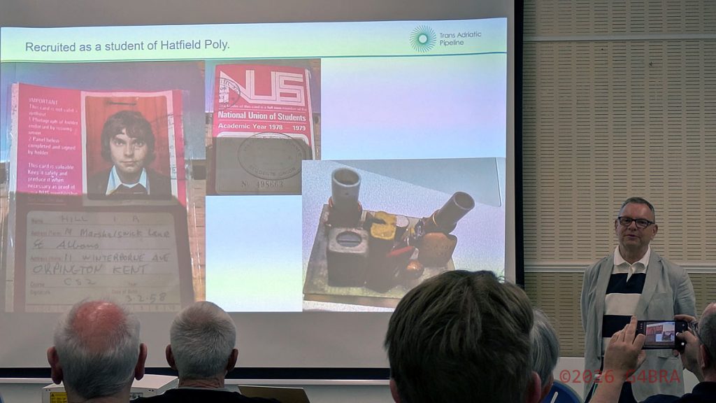 Without a break, Ian then explained with some great detail, the design, installation and operation of DMR/Tetra Radio links across the length of the Trans Adriatic Pipeline from Turkey to Italy. An amazingly complex and sophisticated set-up with built in spare capacity and capability helping ensure future-proofing.